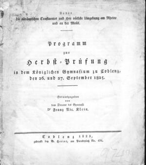 Über die altrömischen Confluentes und ihre nächste Umgebung am Rheine und an der Mosel / [Franz Nic. Klein]