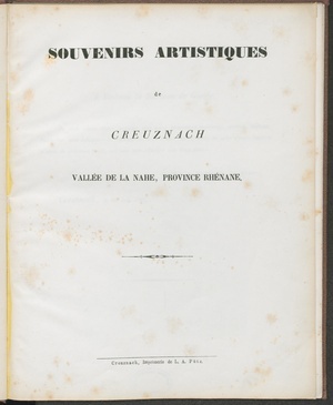 Bingen, Creuznach, das Nahthal und der Donnersberg : dargestellt in sechs malerischen Ansichten ; mit einem kurzen Texte = Bingen, Creuznach, la vallée de la Nahe et le Mont-Tonnerre / nach der Natur gezeichnet und radirt von Roux