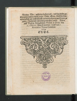 Vorlageform des Erscheinungsvermerks: Getruckt zu Prag/ bey Absolon Werdenburg/ 1619