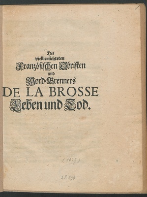 Des vielberüchteten Französischen Obristen und Mord-Brenners De La Brosse Leben und Tod