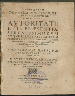 Vorlageform des Erscheinungsvermerks: Spirae, Sumptibus Christophori Olffen. MDCLXXXI.