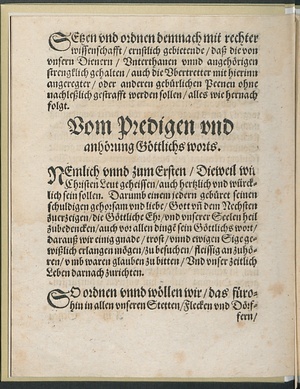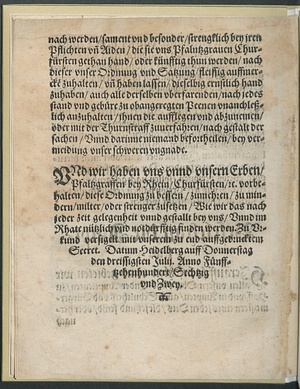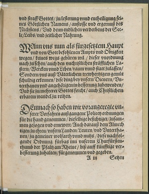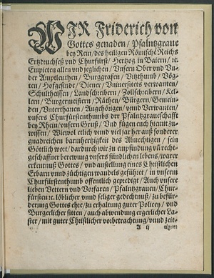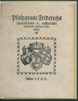 Pfaltzgraue Friderichs || Churfürstens/ [et]c. auffgerichte || Christliche Policey Ord=||nung.||