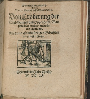 Vorlageform des Erscheinungsvermerks: Gedruckt zu Speyer vnd Verlegt/ durch Johann Taschner/ Jm Jahr M.DC.VI.