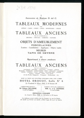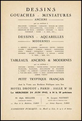 Objets d'art anciens : dessins anciens : par ou attribués à Boilly (L.L.), Boucher (François), Carmontelle, Clérisseau, Dyck (A. Van) [und weitere] : tableaux anciens : par ou attribués à Boucher (François), Demachy, Demarne, École Flamande, École Française, Heemskerk (E. Van) [und weitere] : porcelaines et faïences anciennes de Chantilly, Chine, France, Hochst, Japon, Lorce, Louisbourg, Saint-Cloud, Saxe, Sceaux, Sèvres, Tournai, Vincennes : objets de vitrine, miniatures, argenterie ancienne, terres cuites, objets divers: Collection de Madame X... : dont la vente aux enchères publiques aura lieu Hôtel Drouot, Salle No 11, le lundi 28 novembre 1927 / commissaire-priseur André Desvouges ; expert Édouard Pape