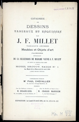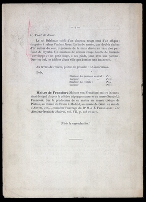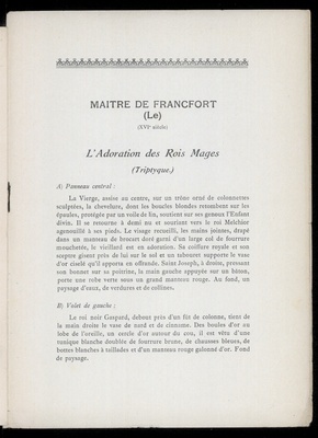 Un triptyque par le Maître de Francfort : (XVIe siècle) : "L'adoration des rois mages" : succession de Monsieur Comte de F... : dont la vente aux enchères publiques et vertu d'ordonnance aura lieu Hôtel Drouot, Salle No 10, le mercredi 23 décembre 1931 / commissaires-priseurs F. Lair Dubreuil, Henri Baudoin ; experts J. Féral et R. Cl. Catroux