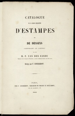 Catalogue des tableaux anciens : dessins, gouaches, gravures : par Bellangé (H.), Bosio (J.), Boucher (F.), Bourdon (S.) [und weitere] : œuvres remarquables de: Sébastien Bourdon, les frères Le Nain et Jean-Baptiste Oudry : Composant la Collection de M. le Marquis de M... et provenant du Château de X... : dont la vente aux enchères publiques aura lieu Hôtel Drouot, Salle No 10, le samedi 14 mars 1914 / F. Lair Dubreuil, commissaire-priseur ; Georges Sortais, peintre-expert près le tribunual civil de la Seine