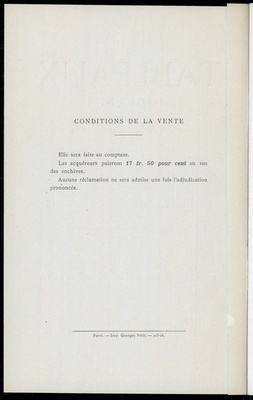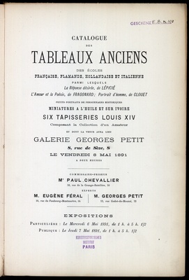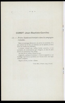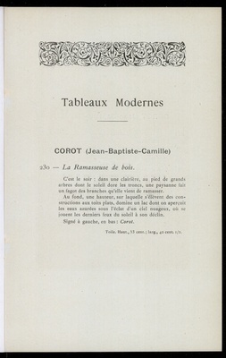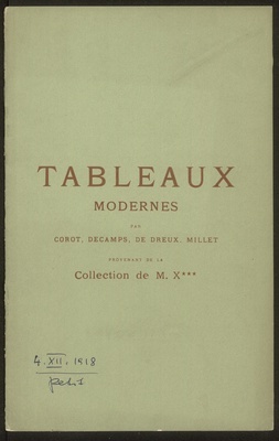 Catalogue des tableaux modernes : par : Corot, Decamps, de Dreux, Millet : provenant de la Collection de M. X*** : dont la vente aura lieu Galerie Georges Petit, 8, rue de Sèze, le mercredi 4 décembre 1918 / commissaire-priseur F. Lair-Dubreuil ; expert Georges Petit