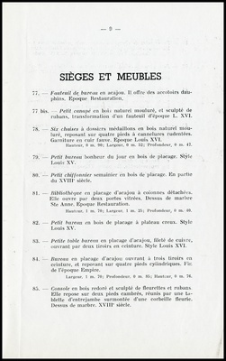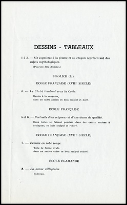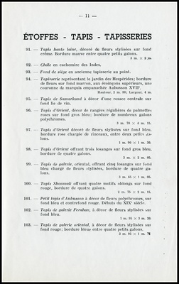 Objets d'ameublement : principalement du XVIIIe siècle : porcelaines & faïences : Canton, Chine, Rouen : argenterie ancienne et moderne : bronzes, bois sculptés, verrerie : sièges & meubles du XVIIIe siècle et d'Époque Empire : petite commode d'Époque Louis XV : bibliothèque d'Époque et Style Régence : tapisseries anciennes : tapis d'Orient : vente Hôtel Drouot, Salle No 6 le vendredi 27 février 1942 / commissaire-priseur: D.H. Baudoin ; assisté de: Bernard Dillée, expert près le Tribunal civil de la Seine