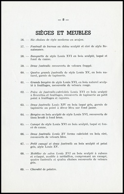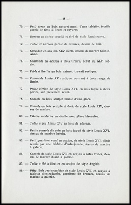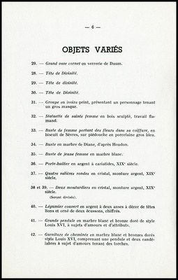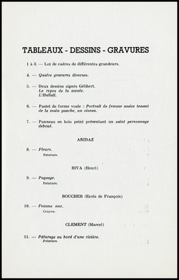Objets d'art et d'ameublement : céramique, porcelaine : bronzes, sculptures, biscuits, marbres : tableaux, gravures, dessins : argenterie : sièges et meubles : bibliothèque, armoires, bahuts, cabinets, commodes, vitrines, consoles, bureaux : lit de repos, coiffeuse, horloge : piano demi-queue de "Érard" : pendules, candélabres, appliques : lustres, glaces : coffre-fort de "Gallet" : rideaux, tentures : tapis d'Orient : vente Hôtel Drouot, Salle No 12 le mercredi 18 mars 1942 / commissaire-priseur: D.H. Baudoin
