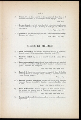 Catalogue des tableaux anciens : objets variés : porcelaines et faïences : objets de vitrine : étains, pendules, bronzes : rétable espagnol du XVIe siècle : sièges et meubles : principalement du XVIIIe siècle : fauteuils, chaises, bergères, mobliliers de salon .... : tapis d'Orient : tapisserie de Beauvais : dont la vente aux enchères publiques aura lieu Hôtel Drouot, Salle No 12 le vendredi 20 mars 1942 / commissaire-priseur: Étienne Ader, successeur de Maurice Ader et F. Lair Dubreuil ; assisté de: Bernard Dillée, expert près le Tribunal civil de la Seine