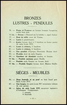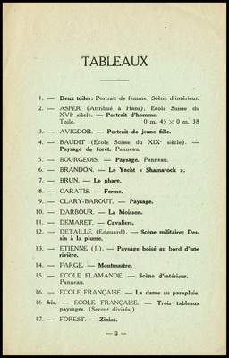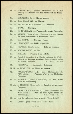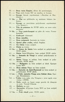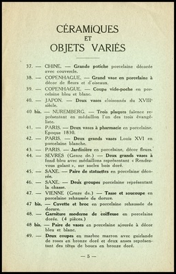 Objets d'art et d'ameublement : tableaux anciens et modernes : par, d'après ou attribué à: Hans Asper, Ed. Detaille, Jan van Kassel, Lebasque, Panini, etc .... : objets variés : porcelaines, bois sculptés, objets de vitrine : instruments de musique : bronzes : sièges et meubles : tapisseries, tapis d'Orient : dont la vente aux enchères publiques aura lieu Hôtel Drouot, Salle No 6 le mercredi 19 mai 1943 / commissaire-priseur: René Camuzat ; expert: J. Subert, expert près les douanes françaises