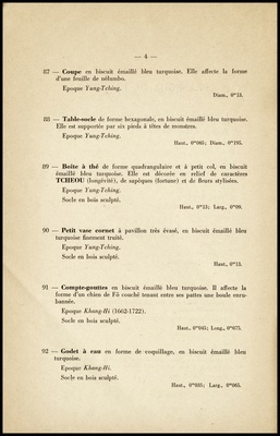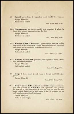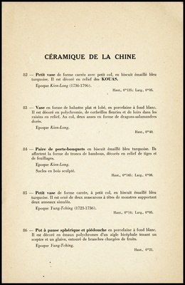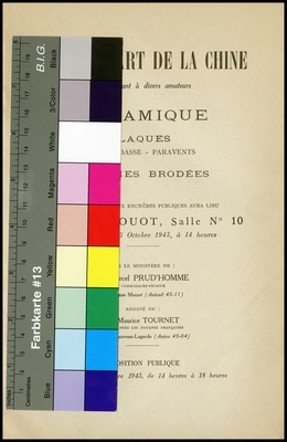 Objets d'art de la Chine : appartenant à divers amateurs : céramique : laques : table basse, paravents : soieries brodées : dont la vente aux enchères publiques aura lieu Hôtel Drouot, Salle No 10 le mercredi 13 octobre 1943 / par le Ministère de: Marcel Prud'Homme, commissaire-priseur ; assisté de: Maurice Tournet, expert près les douanes françaises
