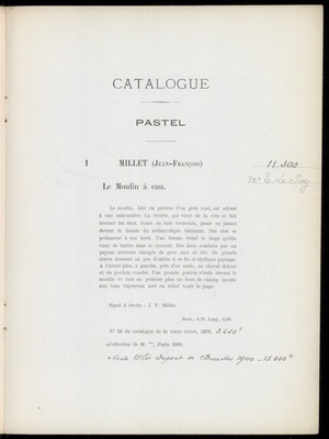 Catalogue : pastel par J.-F. Millet : et tableau par Th. Rousseau : dont la vente publique aura en la Galerie J. & A. Le Roy, Frères, le lundi 14 décembre 1903 / experts : MM. J. & A. Le Roy, Frères, Bruxelles