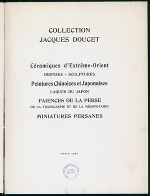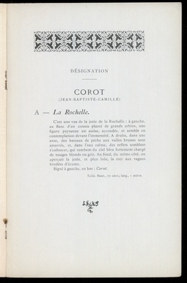 Notice d'un important tableau par Corot : "La Rochelle" : provenant de la Collection de M. L... : dont la vente aux enchères publiques, par suite d'indivision aura lieu Galerie Georges Petit, 8, rue de Sèze, le samedi 29 mai 1920 / commissaire-priseur Marcel Walter ; expert Georges Petit
