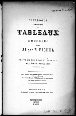 Catalogue d'une collection de tableaux modernes dont 21 par E. Fichel / vente à Paris, 24 fév. 1868 ... , Hôtel Drouot