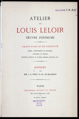 Schriftenreihe des Originals: Vente / Hotel Drouot ; 1877.04.7.-20.