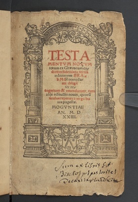 Testamentum Novum, sive Novum foedus, jesu Christi, D.N. : cuius Graeco contextui respondent interpretationes 2: una, vetus: altera, Theodori Bezae, nunc quarto diligenter ab eo recognita ; eiusdem annotationes, quas itidem hac quarta edit. accuratè recognouit ...