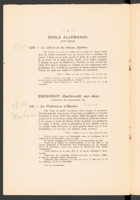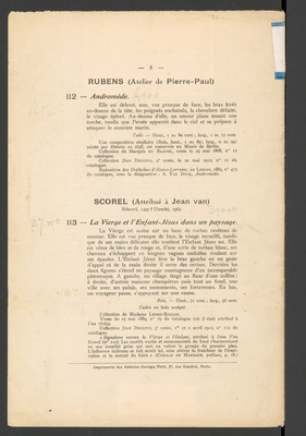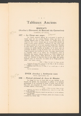 Catalogue des tableaux modernes par Bonnington, Corot, Isabey, tableaux anciens par ou attribués à Boccati, Van Dyck, Van den Eeckhout, Scorel, etc. appartenant à monsieur M.... [Mirabeau ?] et dont la vente ... aura lieu à Paris, Galerie Georges Petit, le vendredi 27 mai 1932 / commissaires-priseurs Henri Baudoin ...