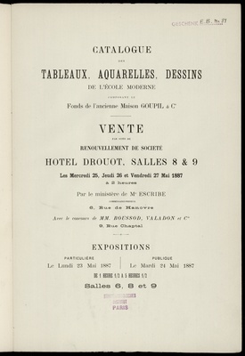 Schriftenreihe des Originals: Vente / Hotel Drouot ; 1904.11.28