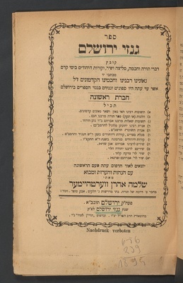 Sefer shalosh yevavot : leʿorer levavot yevavu banim ṿe-avot ʿal mot ha-rav ha-gaʾon ... Yehudah Leyb Shayer ... a.b.d. ṿe-r. m. di-ḳ.ḳ. Diseldorf ... / me-et ... Leyb Ḳarlsburg ... ; ṿe-anokhi Menashe Grośberg ...