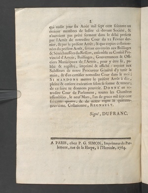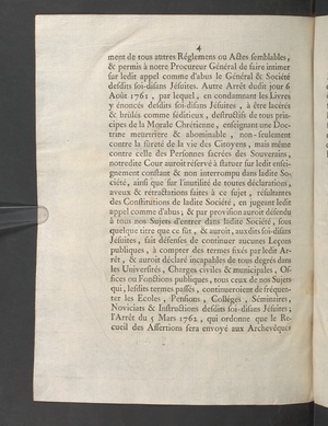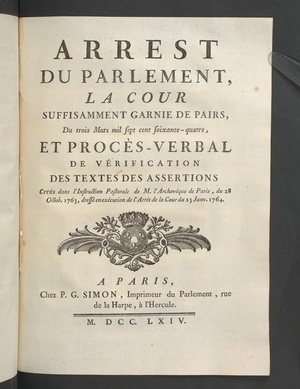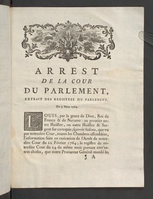 Arrest De La Cour De Parlement: Extrait Des Registres Du Parlement. Du 9 Mars 1764.