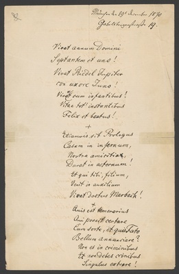 4° Ms 100-17 - Lateinisches Gedicht auf das Jahr 1871 (Vivat annum Domini, Septantem et uno!)