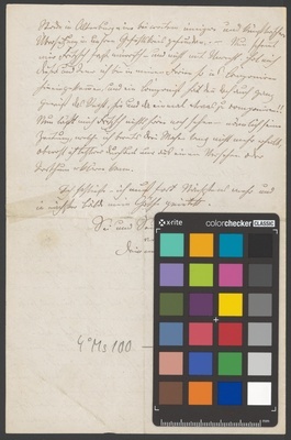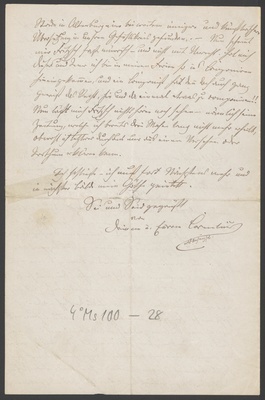 4° Ms 100-28 - Theurer Freund! Verzeihe, daß ich auf deinen inhaltsschweren Brief einstweilen nur wieder mit einem flüchtigen Wort erwidere