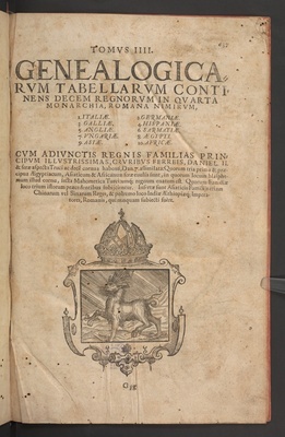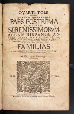 In: Theatrvm Genealogicvm Ostentans Omnes Omnivm Ætatvm Familias: Monarcharvm, Regvm, Dvcvm, Marchionum, Principum, Comitum, atquè illustrium Heroum & Heroinarum: Item Philosophorvm, Oratorvm, Historicorvm, ...