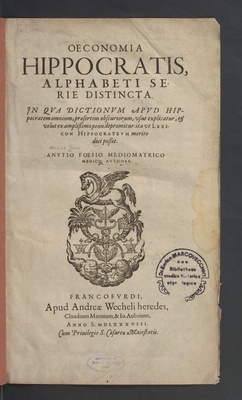 Vorlageform des Erscheinungsvermerks: Basileae, Ex Officina Hervagiana, per Eusebium Episcopium, Anno MDLXVIII