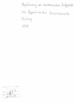 Verpfändung der kurtrierischen Zollgefälle von Boppard an die Travelmannsche Stiftung