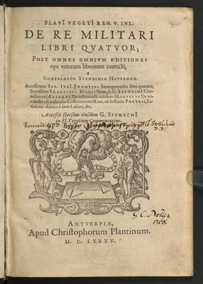 Flavi[i] Vegeti[i] Ren. V. Inl. De Re Militari Libri Qvatvor / Post Omnes Omnivm Editiones ope veterum librorum correcti, A Godescalco Stewechio Hevsdano