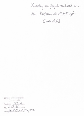 Bewerbung des Joseph von Stahl um eine Professur der Metallurgie