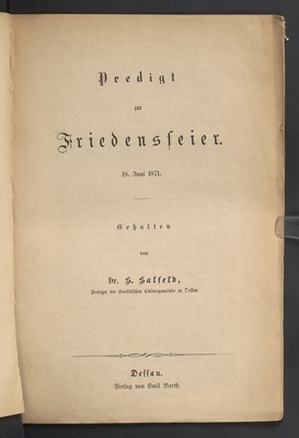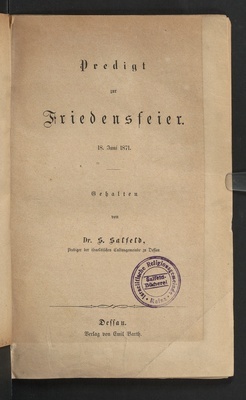 Die Glaubens-Flamme : Gottesdienstlicher Vortrag gehalten am Sabbath Sch'mini 5616 (29. März 1856) im Israelitischen Tempel in Wien : mit einem Vorworte als Erwiederung auf "Wiener Briefe von H. Birndorf. III." in Nro. 31 u. 32 der allgemeinen Zeitung des Judenthums / von Dr. Julius Landsberger, Rabbiner und Prediger der israelitischen Brüdergemeinde zu Posen