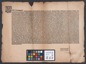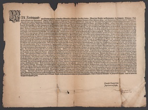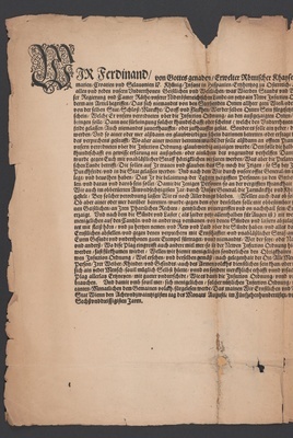 Wir Ferdinand, von Gottes genaden, Erwelter Römischer Khayser, zu allen Zeitten, Merer des Reichs, in Germanien, zu Hungern, Behaim, Dalmatien, Croatien und Selauonien ... das vnser Regierung vnd Camer Räthe ... ain Newe Infection Ordnung, auf vnser Stat Wienn, vnd derselben Purckhfridt, außgeen haben lassen ... Geben in vnser Stat Wienn den Achtvndzwaintzigisten tag des Monats Augusti im Fünfzehenhundertisten, und Zwayvndsechtzigisten, Unserer Reiche des Römischen im Zwayvnddreissigisten, vnnd der andern im Sechßvnddreissigisten Jaren
