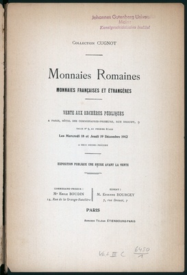Catalogue des objets d'art et d'ameublement principalement du XVIIIe siècle ; tableaux anciens ... ; porcelaines anciennes ... ; bronzes, pendules ... ; et dont la vente aux enchères publiques aura lieu à Paris, Galerie Jean Charpentier, le jeudi 14 Décembre et vendredi 15 Décembre 1933 / Commissaire-Priseur: Me Étienne Ader