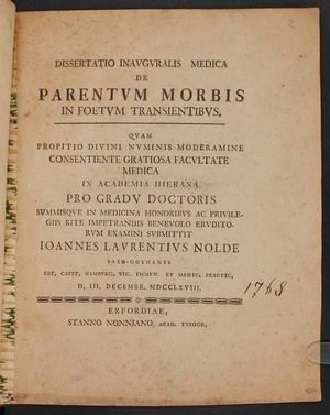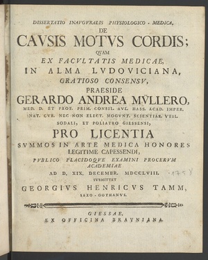 Dissertatio Inauguralis Medica De Suppuratione Eamque Adjuvantibus Medicinis In Genere / Quam In Inclyta Universitate Duisburgensi Consentiente Ampl. Facultate Medica Pro Gradu Doctoris ... Proposuit Die XXVII. Januar. MDCCLXI. Johannes Conradus Kirchhoff Hammona - Marcanus.
