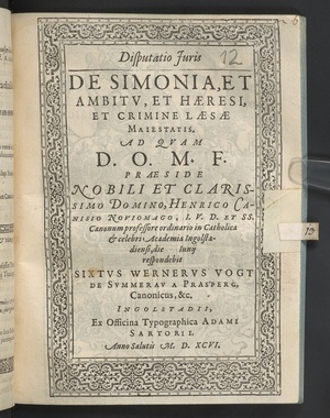 Theses De Legatis Conferendis, Adimendis, Transferendis, Et Per Legem Falcidiam Diminuendis. / Quas, Præside ... D. Pavlo Graseccio I.V.D. Et In Inclyta Argentoratensium Academia Professore ordinario, exercitij gratia a se propositas, pro ingenui tenuitate, defendere conabitur Reichardvs Reichardi Oberehenheimensis.