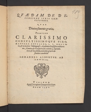 Quaedam de defensione iuris conclusiones / quas ... praeside ... Matthae Entzlino ... defendere conabitur Iohannes Albertus ab Anweil