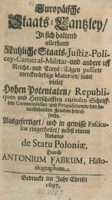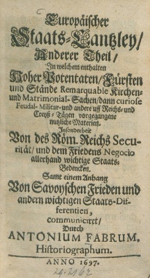 Enthält die auf dem Titelblatt zum 1. Band erwähnten und eine weitere Ergänzung (im VD 17 nachgewiesen unter VD17 1:075030W, VD17 1:075032M und VD17 1:075034B)