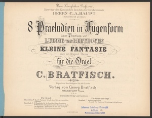 8 Praeludien in Fugenform über Themata von Ludwig van Beethoven und kleine Fantasie über ein Original-Thema : für die Orgel / componirt von C. Bratfisch