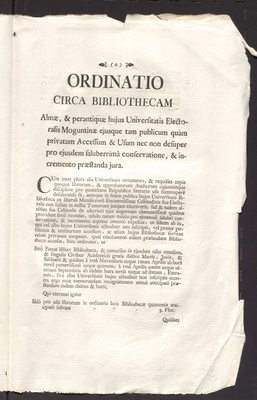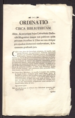L 1142 - Ordinatio circa bibliothecam. 1 Prod.