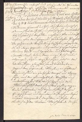 L 1307 - Kurfürst kommuniziert der Regierung das der Mainzer Universität erteilte Privileg zur Errichtung einer Apotheke und eines Fett- und Spezereikramladens. 1 Prod.