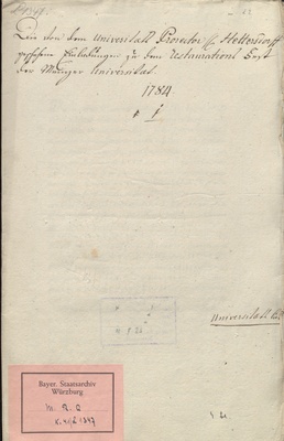L 1347 - Die von dem Universitätsprorektor Hettersdorf erlassene Einladung zu dem Restaurationsfest der Mainzer Universität. 1 Prod.