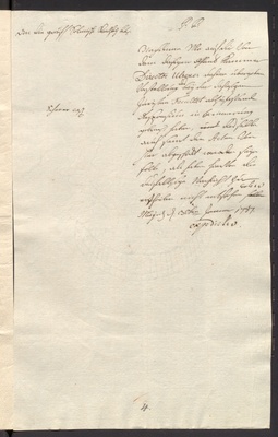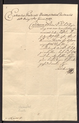 L 1361 - Von Seiten des regierenden Grafen von Solms wird bei der Mainzer Juristenfakultät das Ersuchen um Rücksendung von Akten gestellt, welche dahin zur Abfassung eines Urteils in Sachen des Regierungsassessors Buß gegen die Schutzjüdin Sara zu Lich versendet worden waren. 5 Prod.