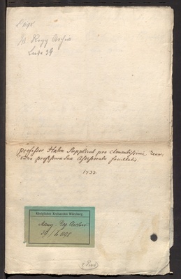 L 1198 - Professor Hahn suppliziert pro clementissime reuniendo professurae suae assessoratu facultatis. 2 Prod.