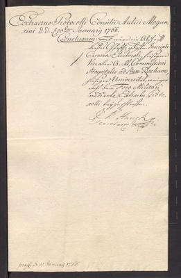 L 1207 - Chirurg Tiel wird als Prosektor an der Mainzer Anatomie angenommen und ihm Personalfreiheit erteilt.