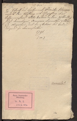 L 1376 - Hofrat und Vizedomamtsdirektor Heimes erhält Auftrag mit Zuziehung des Botenmeisters bei dem verstorbenen Entbindungshausökonomieverwalter Moriz zu obsignieren und die Sektion der Leiche zu veranlassen. 3 Prod.