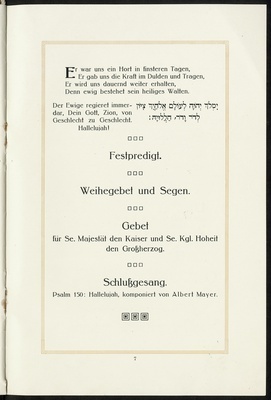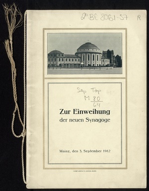 Zur Einweihung der neuen Synagoge : Mainz, den 3. September 1912 : Festgottesdienstordnung