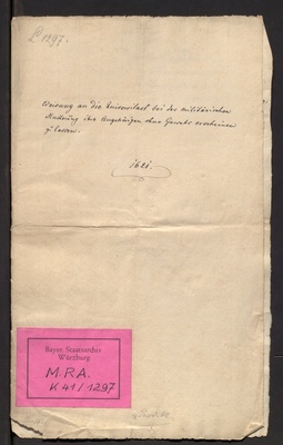 L 1297 - Weisung an die Universität, bei der militärischen Musterung ihre Angehörigen ohne Gewehr erscheinen zu lassen. 4 Prod.
