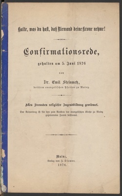 Halte, was du hast, daß Niemand deine Krone nehme! : Confirmationsrede, gehalten am 5. Juni 1876 / von Dr. Emil Steinmetz